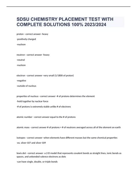 Read Online Solutions For Sdsu Chem Placement Test PDF