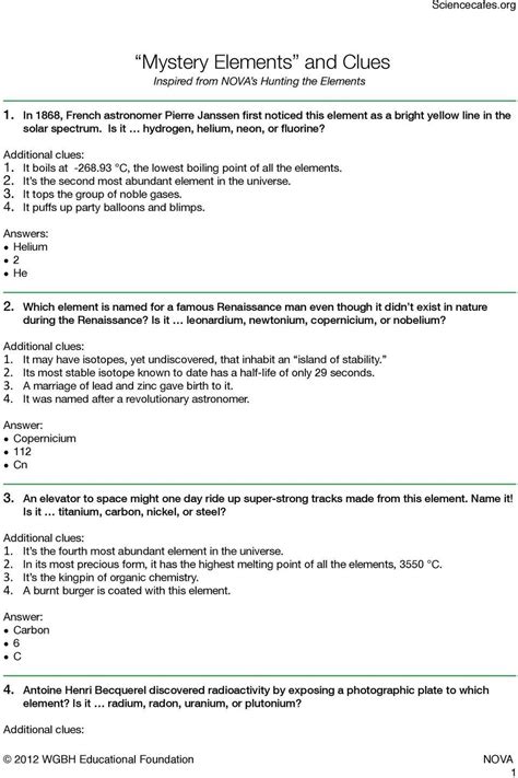 Read Online Nova Hunting The Elements Answer Key Doc